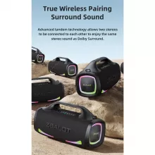 Our speaker stands out with its robust build, versatile playback options, and exceptional sound quality. Whether you’re seeking the clarity of voices or the thrill of explosive bass, the customizable sound effects cater to every preference. The advanced Bluetooth 5.2 technology ensures a stable connection up to 100 feet away, while the speaker’s waterproof and durable design allows for use in any setting. Additionally, it doubles as a power bank, ensuring your devices stay charged on the go.