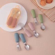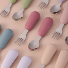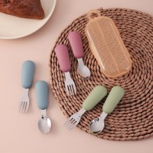 The soft silicone handles offer a comfortable, non-slip grip for your baby, while the smooth stainless steel tips are just the right size for little mouths. Whether your child is just beginning to explore solids or is already mastering the art of feeding themselves, this fork and spoon set makes the experience both fun and frustration-free.