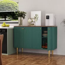 Transform your space with the elegant charm and smart functionality of this 48″ Modern Sideboard Buffet Cabinet. Featuring a bold gold-green color palette and a sleek water ripple design, this 4-door accent cabinet is the perfect blend of modern aesthetics and practical storage. Whether you’re decorating your living room, entryway, dining area, or office, this versatile piece brings a refined touch that elevates any room.
