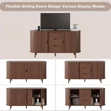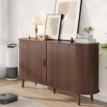 Bring timeless charm and smart convenience to your living space with this 59″ Mid Century Modern TV Stand. Featuring a clean walnut finish, smooth curved edges, and a sleek fluted design, this tall media console blends classic mid-century aesthetics with everyday functionality. Standing 32 inches high, it’s the perfect solution for those who want to elevate their TV viewing experience—literally and visually. Whether placed in your living room, bedroom, or office, this TV stand adds an elegant touch while keeping your devices powered and your essentials organized.