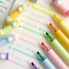These highlighters are more than just stationery—they’re little bursts of joy for your desk. Use them when studying to make your notes more engaging, when journaling to add color and personality, or even during work meetings to stay organized. Their unique rotating design offers a playful way to relax your mind, making them both useful and entertaining. The smooth oblique tip ensures every stroke is clean, whether you’re underlining or shading large sections. And with six different shades, you’ll never run out of creative options.