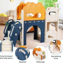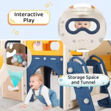 From climbing to sliding to shooting hoops, this playset keeps your little one active and engaged. The fun telescope encourages curiosity, while the arched tunnels inspire imaginative play. A spacious toy storage area beneath the slide helps kids learn organization and tidying habits.