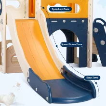 The 76.7-inch extended slide features a smart three-zone design—acceleration, deceleration, and buffer—to ensure a smooth, gentle landing. The wide waiting area at the top gives kids room to turn around and get ready for their next big slide adventure. Its unique L-shaped structure provides extra ground contact for stability and space efficiency—perfect for smaller homes or apartments.