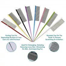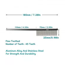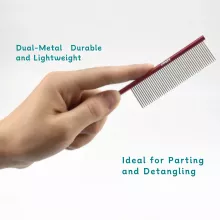 This grooming comb combines strong aluminum alloy with durable stainless steel teeth for long-lasting performance and a clean, hygienic grooming experience. The fine, dense teeth are specially spaced to break up stubborn mats while being gentle on your pet’s skin. A unique tapered tail tip lets you easily part fur, style facial hair, and create neat sections for finishing touches like bows or braids.