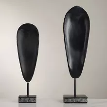 Each sculpture is fully handmade, showcasing expressive facial features and a symbolic design inspired by African cultural traditions. The resin material delivers strength and durability while allowing intricate carving patterns to shine through. Available in two sizes — Small (approximately 3.94 x 2.36 x 13.19 in) and Large (approximately 4.72 x 2.95 x 16.34 in) — it includes a sturdy base that makes it easy to display on any flat surface.
