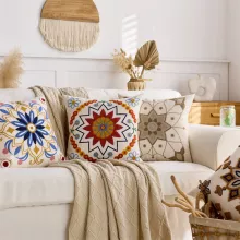 Transform your living space with this beautifully designed Boho Geometric Throw Pillow Cover. Crafted from soft, breathable cotton, this 18×18 inch (45×45 cm) cushion cover brings a burst of color and ethnic charm to your home décor. Whether you’re styling your sofa, brightening up your bed, or adding a touch of comfort to a bay window seat, this pillowcase is a perfect match for cozy, stylish living.
