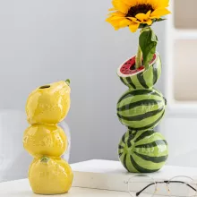 Brighten up your living space with this playful yet modern ceramic fruit vase that brings a pop of citrus charm right to your tabletop. Designed with vivid orange, lemon, and watermelon motifs, this eye-catching piece adds a touch of summer sunshine to any room. Whether you place it on your coffee table, office desk, or kitchen counter, this vase instantly turns any surface into a conversation starter.