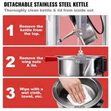 Crafted from a cold-rolled plate frame and tempered glass panels, this popcorn machine is made for long-term, frequent use. The magnetic door latch allows quick access, and the wing nut design makes cleaning the kettle lid simple. The removable crumb tray keeps your countertop spotless by collecting stray kernels and crumbs effortlessly.