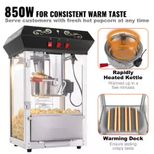 - Quick Heating: Preheats fast and delivers fresh popcorn in minutes.