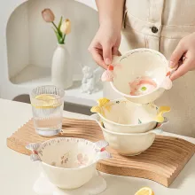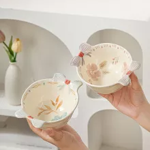 Bring a touch of charm and warmth to your dining table with this Cream Floral Ceramic Double Ear Bowl. Beautifully hand-painted and crafted from premium porcelain, this bowl combines delicate artistry with everyday functionality. Its soft cream color, accented by subtle floral patterns, gives it a natural, elegant appeal that complements both modern and traditional table settings.