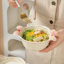 Each bowl is carefully hand-painted and embossed, making every piece unique. The underglaze color process ensures the floral design remains vibrant and smooth to the touch, even after repeated use. With its double-ear design, the bowl is easy to handle, whether you’re serving fresh salads, desserts, or warm soups. Its round shape and sturdy structure add both beauty and practicality to your kitchen collection.