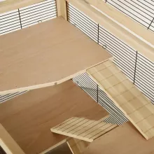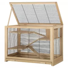 Our Deluxe Wooden Cage stands out with its thoughtful design tailored for small pets. The secure door with lock ensures your pets stay safe, while the sturdy grid construction withstands their playful antics. Ideal for any time your small friend needs a comfortable, enriching habitat to call home.
