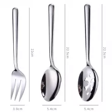 - Perfect Size: Spoon and slotted spoon measure 8.9 x 1.6 inches; fork measures 8.7 x 1.5 inches.