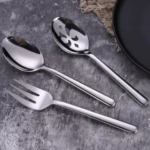 Enhance your dining experience with this premium Stainless Steel Salad Serving Spoon and Fork Set. Designed for both function and style, this essential cutlery set includes a solid spoon, slotted colander spoon, and a fork—perfect for tossing salads, serving pasta, or dishing out side plates during gatherings. Made with high-quality stainless steel, this set is built to last, offering exceptional strength, rust resistance, and long-lasting shine. Whether you’re entertaining guests or enjoying a family meal, these utensils add a touch of elegance to every table setting.