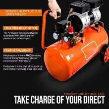 - Powerful Performance: With a 1HP motor and a max pressure of 120 PSI, this compressor efficiently powers tools and inflates tires quickly and effectively.