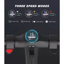 - Versatile Three-Speed Gear: Easily switch between speeds of 6.25, 12.5, and 15.5 MPH to suit your pace, enhanced with an LED display for clear visibility of battery and speed settings.