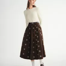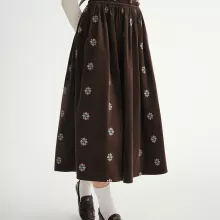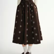 This skirt combines a classic retro aesthetic with modern comfort. Its embroidered accents create the perfect blend of elegance and personality, while the soft stretch corduroy ensures it remains comfortable from morning to night. It’s designed for women who appreciate refined, breathable fabrics and enjoy expressing their style through subtle, artistic details.