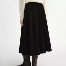 Step into timeless charm with this beautifully crafted black embroidered corduroy A-line skirt. Designed with a soft, medium-stretch corduroy blend, it delivers both comfort and effortless sophistication. Its mid-calf length and graceful pleats create a flattering silhouette that moves naturally with you, making it perfect for everyday wear during the cooler months. Whether you’re heading to work, strolling through the city, or meeting friends for coffee, this skirt brings a touch of gothic elegance to your look.