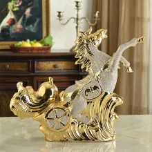 Crafted from high-quality jade porcelain, this lucky horse ornament is a true representation of elegance and craftsmanship. The beautiful gold-plated finish adds a layer of luxury, making it a standout feature in any space. With its vivid design, the ornament exudes a powerful sense of realism and movement, capturing the energy of the horse in an artistic yet refined way. The baked sand finish enhances the visual appeal, ensuring the sculpture remains vibrant and resistant to fading over time.