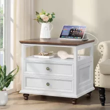 With a generous 24-inch tabletop, open compartment, and two large drawers, this table offers plenty of room for your nighttime essentials, books, décor, and more. Whether it’s beside your bed or next to the sofa, it combines both storage and display in one sleek design. Crafted from sturdy wood, the thick 1.2-inch tabletop can hold up to 150 lbs—strong enough for lamps, vases, or other decorative accents.