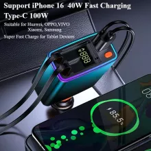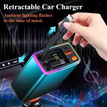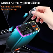 This all-in-one car charger features a retractable multi-device cable that includes USB and Type-C connectors, making it compatible with a wide range of devices. Its compact and clutter-free design fits seamlessly into your car’s interior, while the sleek ambient lighting adds a modern, tech-forward touch that’s especially handy during night drives.
