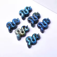 Bring an enchanting touch of nature and healing energy into your space with this Hand Carved Labradorite Snake Figurine. Expertly crafted from natural Labradorite crystal, this stunning animal figurine is not only a beautiful piece of decor but also a powerful tool for spiritual growth and healing. Labradorite, known for its mystical qualities and iridescent blue and yellow hues, is believed to enhance intuition, protect against negative energies, and promote transformation. Whether displayed as a focal point in your home or as part of your crystal collection, this unique snake figurine will infuse your environment with positive energy and charm.