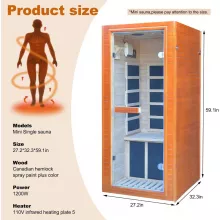 - Compact and Space-Saving: Measuring 27.16 x 32.28 x 59 inches (L x W x H) with a 5-foot height, this mini sauna is ideal for small spaces while still providing a full sauna experience.