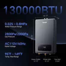 Enjoy the comfort of instant hot water with the Indoor Tankless Natural Gas Water Heater. Designed to deliver consistent and unlimited hot water for your entire home, this tankless water heater eliminates the need for preheating and waiting. With a sleek, compact design, it fits effortlessly into small spaces while providing a powerful performance of up to 5.3 gallons per minute and 130,000 BTU. Ideal for families or households with multiple water outlets, it’s the perfect solution for modern living.