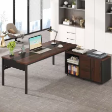 Bring sophistication and efficiency to your office with this Large L-Shaped Executive Desk and File Cabinet Combo. Designed for professionals who value space, organization, and style, this two-piece workstation offers everything you need to create a productive and elegant workspace. Its expansive 70.8″ desktop gives you plenty of room for dual monitors, paperwork, and all your essential office accessories—making it ideal for home offices, business workstations, or executive suites.