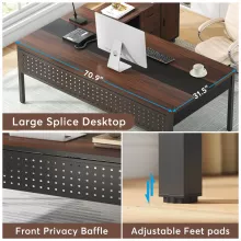 The extra-large 70.8″ x 31.5″ desk provides a generous work surface, while the matching 47″ lateral file cabinet adds versatile storage with two drawers, open shelving, and a closed-door cabinet. The lower drawer accommodates A4, Letter, or Legal-size files, helping you stay organized and clutter-free. The sleek front baffle adds a touch of privacy and refined style—perfect for both professional and home environments.