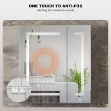 Featuring a built-in defogger, this mirrored medicine cabinet ensures your reflection stays crystal clear—even after a hot shower. The one-touch defogging system heats up quickly and automatically shuts off with the light to save energy. Its dimmable LED lighting gives you three color temperatures to choose from—warm, neutral, and cool—adjustable with a smart touch control. Whether you’re applying makeup or getting ready for bed, you can customize the brightness and tone for the perfect ambiance.