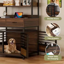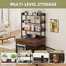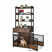 Give your furry friend a cozy home without compromising on your home’s style. This Luxury Dog Crate with Tall Storage Shelves and Built-in Charging Ports is the perfect blend of comfort, convenience, and elegance. Designed with a stunning vintage brown finish, it fits beautifully in your living room, offering a smart solution for both pet care and storage.
