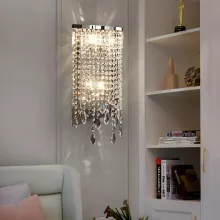 Bring a touch of luxury and sophistication to your home with the Luxury Postmodern Crystal Wall Lamp. Designed for those who appreciate artistic lighting, this wall lamp perfectly balances modern aesthetics with timeless crystal elegance. Its sleek stainless steel frame and shimmering K9 crystals create a stunning visual statement, making it ideal for bedrooms, living rooms, hallways, and upscale villa interiors.