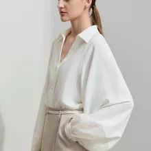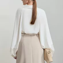 This blouse is more than just a top; it’s a versatile wardrobe essential. With its lightweight yet midweight fabric, it strikes the perfect balance between comfort and style. The breathable chiffon makes it ideal for both the office and casual outings, while the loose fit offers all-day comfort without compromising on elegance. The solid color ensures easy pairing with virtually any bottom, from trousers to skirts, making it an essential for any modern woman’s wardrobe.