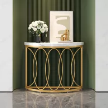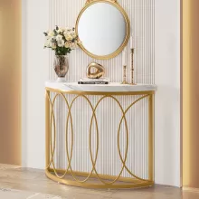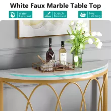 Bring a touch of sophistication and modern luxury into your home with the Half Moon Gold Console Table. Featuring a unique curved semi-circle silhouette, this stunning piece perfectly blends minimalist style with contemporary elegance. Its sleek white faux marble tabletop and gleaming geometric gold metal frame make it a showstopper in any entryway, hallway, or living room. Whether placed behind your sofa or against the wall, this console table instantly elevates your space with its chic charm and refined presence.