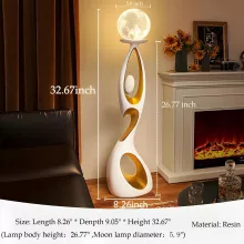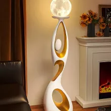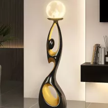 Transform your living space with this Modern LED Resin Floor Lamp — where light meets art. Designed with a contemporary, minimalist aesthetic, this creative sculpture-style lamp adds a luxurious glow to any room. Whether placed beside your TV cabinet, in the living room, or used as a bedside accent, it delivers both function and elegance. Crafted from high-quality resin, plated hardware, and energy-efficient LED lighting, this statement piece enhances your décor with sophistication and warmth.