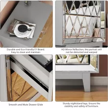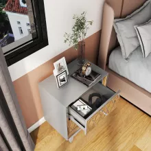Make your bedroom sparkle with these modern mirrored nightstands. Their combination of function, beauty, and contemporary charm makes them a must-have addition to any stylish home. Add this set to your decor today and enjoy the perfect blend of luxury and practicality every day.