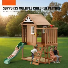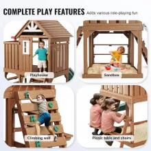 - Multi-Functional Play Scenes: Includes a climbing ladder, slide, climbing wall, picnic table with chairs, and a cozy playhouse for diverse activities.