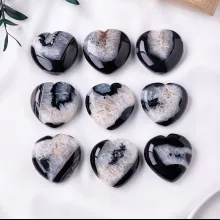 This palm-sized crystal is made of 100% natural agate, carefully polished to reveal its inner patterns while retaining some raw edges that highlight its natural origin. Measuring approximately 2–3 inches, it fits comfortably in your hand for meditation or energy work and makes a striking statement when displayed in your home or office. The black agate is known for its strong grounding energies and is widely used in feng shui practices for emotional stability and protection.