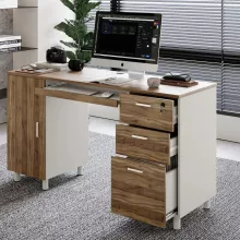 Revamp your home or office setup with this multifunctional office desk featuring 3 spacious drawers, a dedicated CPU storage cabinet, and a convenient keyboard tray. Designed for functionality and style, this desk seamlessly combines storage and workspace, making it an excellent choice for professionals, students, and remote workers alike. Crafted from high-quality wood, it offers durability and a sleek, professional look.