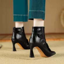 These ankle boots combine quality craftsmanship with stylish design. The split leather upper provides durability and a smooth finish, while the genuine leather or fleece interior cushions your feet through long days. The TPR outsole adds flexibility and grip, giving you steady steps whether you’re walking into the office or heading out for the evening. A convenient zipper closure allows for quick on-and-off wear, and the above-ankle coverage delivers a flattering, elongated silhouette.