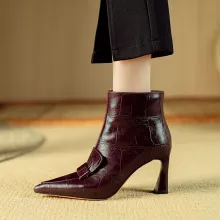 These boots stand out through their balanced combination of elegance and practicality. The handmade construction gives each pair a polished, high-quality finish, while the pointed toe design adds a touch of sophistication without feeling too formal. They’re the perfect companion for cooler days, offering warmth, comfort, and style in equal measure. With rich color options like wine red and black, they easily pair with dresses, denim, skirts, and tailored outfits.
