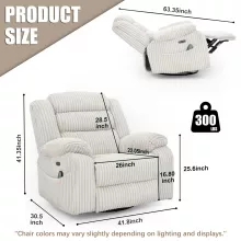 Perfect for movie nights, lazy weekends, or after a long day at work, this Power Swivel Rocker Recliner delivers a personalized comfort experience you’ll look forward to every day. Indulge in the warmth, motion, and luxury you deserve — because your comfort should never be ordinary.