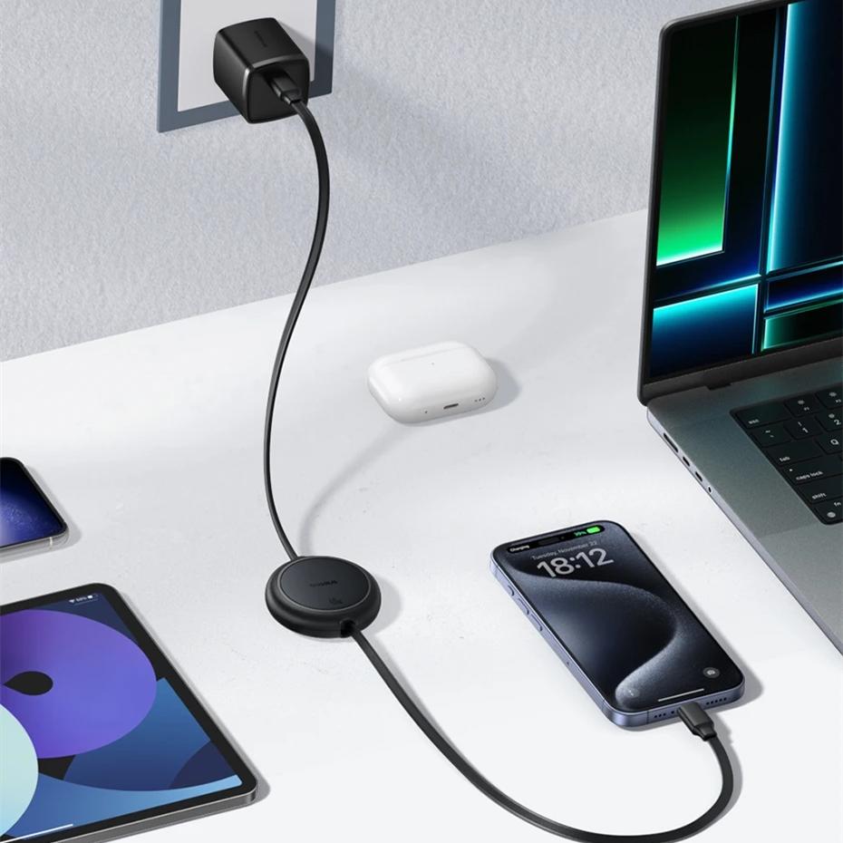No more tangled cables or unnecessary clutter. This retractable cord offers four preset lengths for any situation, whether you’re working at your desk, charging on the go, or relaxing on the couch. Simply pull one side or both sides for smooth extension, and retract it back with ease thanks to its dual-turbo axle system tested for over 50,000 cycles.