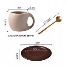 This set includes a beautifully crafted ceramic cup, matching saucer, wooden coaster, and a convenient spoon for stirring. The cup’s comfortable handle makes every sip enjoyable, while the saucer adds stability and charm. With a durable ceramic build, the cup helps maintain the temperature of your drink longer. The wooden coaster provides extra protection for your surfaces. These basic features make the set ideal for everyday use, coffee breaks, or serving guests in style.