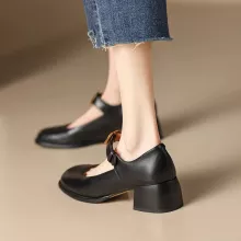 Our Mary Jane Pumps are meticulously crafted from split leather, featuring a robust square heel for stability and a comfortable lift. The adjustable buckle strap ensures a secure fit, while the genuine leather lining, made from pigskin, offers unparalleled comfort. The cow muscle outsole guarantees durability, making these shoes a long-lasting companion for your everyday adventures. Handmade with precision, each pair embodies the essence of artisanal quality and style.