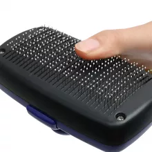 Made with durable stainless steel bristles and a sturdy, easy-grip plastic handle, this brush glides effortlessly through fur without pulling or irritating your pet’s skin. The automatic self-cleaning feature ensures that with just the press of a button, collected hair is released in seconds—keeping your grooming session clean and hassle-free.