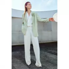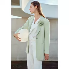 Our blazers are crafted from high-quality polyester, ensuring durability and comfort in every stitch. The solid pattern and notched collar add a classic touch, while the single-button closure ensures a sleek, uninterrupted silhouette. The highlight of this piece is the removable Camellia brooch, adding a three-dimensional decoration that elevates the blazer’s elegance. With a loose fit and long length, it’s designed to flatter any body type, providing a relaxed yet refined look.