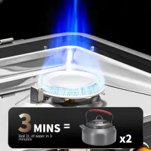 Our stove stands out with its ultra-lightweight design, weighing just 4.1kg. This, combined with its foldable structure, makes it incredibly portable and easy to pack. The double-headed furnace style allows for versatile cooking options, and the rapid boiling time means you spend less time cooking and more time enjoying your outdoor experience.
