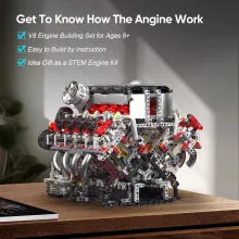 Unleash your inner engineer with this V8 Engine Model Kit That Runs – a hands-on, fully functional building set designed for both kids and adults who love to build, explore, and understand how real engines work. With over 2,700 precision pieces, this advanced building set brings the thrill of mechanical engineering right to your desk or display shelf. Watch the pistons fire, the crankshaft turn, and the turbocharger spin as your creation comes to life powered by its included motor and battery.